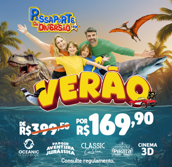 Com o Passaporte da Diversão, você garante entrada em atrações imperdíveis como o Oceanic Aquarium, Aventura Jurássica, Aventura Pirata, Classic Car Show e Cinema 3D. Um combo promocional com valor único e muita diversão para todas as idades.