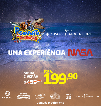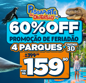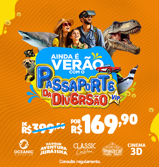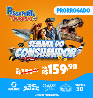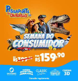 Com o Passaporte da Diversão, você garante entrada em atrações imperdíveis como o Oceanic Aquarium, Aventura Jurássica, Aventura Pirata, Classic Car Show e Cinema 3D. Um combo promocional com valor único e muita diversão para todas as idades.
